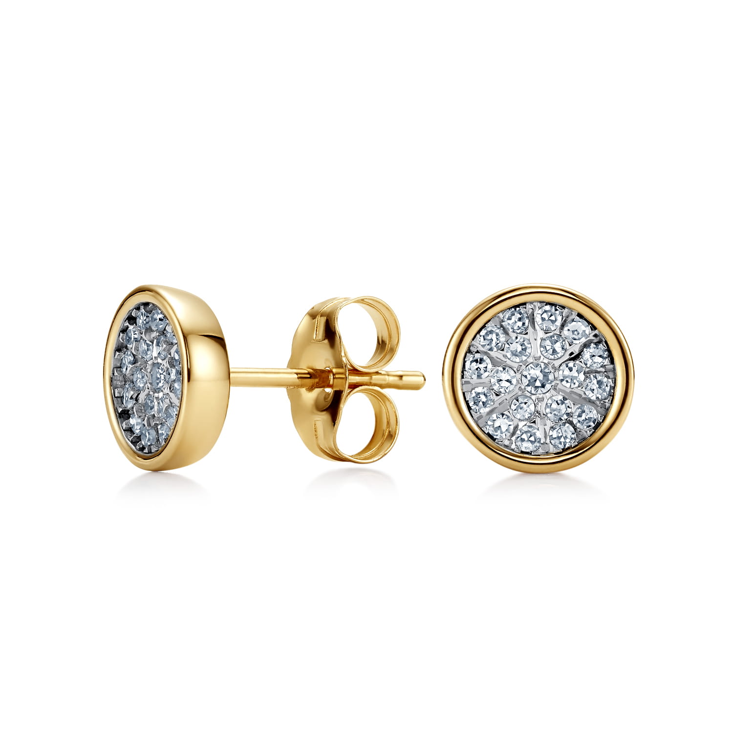 Eleganckie kolczyki na sztyft wykonane z złota próby 585, ozdobione 38 naturalnymi diamentami o łącznej masie 0,15 ct. Precyzyjnie oszlifowane w klasycznym szlifie single cut, diamenty subtelnie rozświetlają całość, nadając kolczykom ponadczasowego uroku.