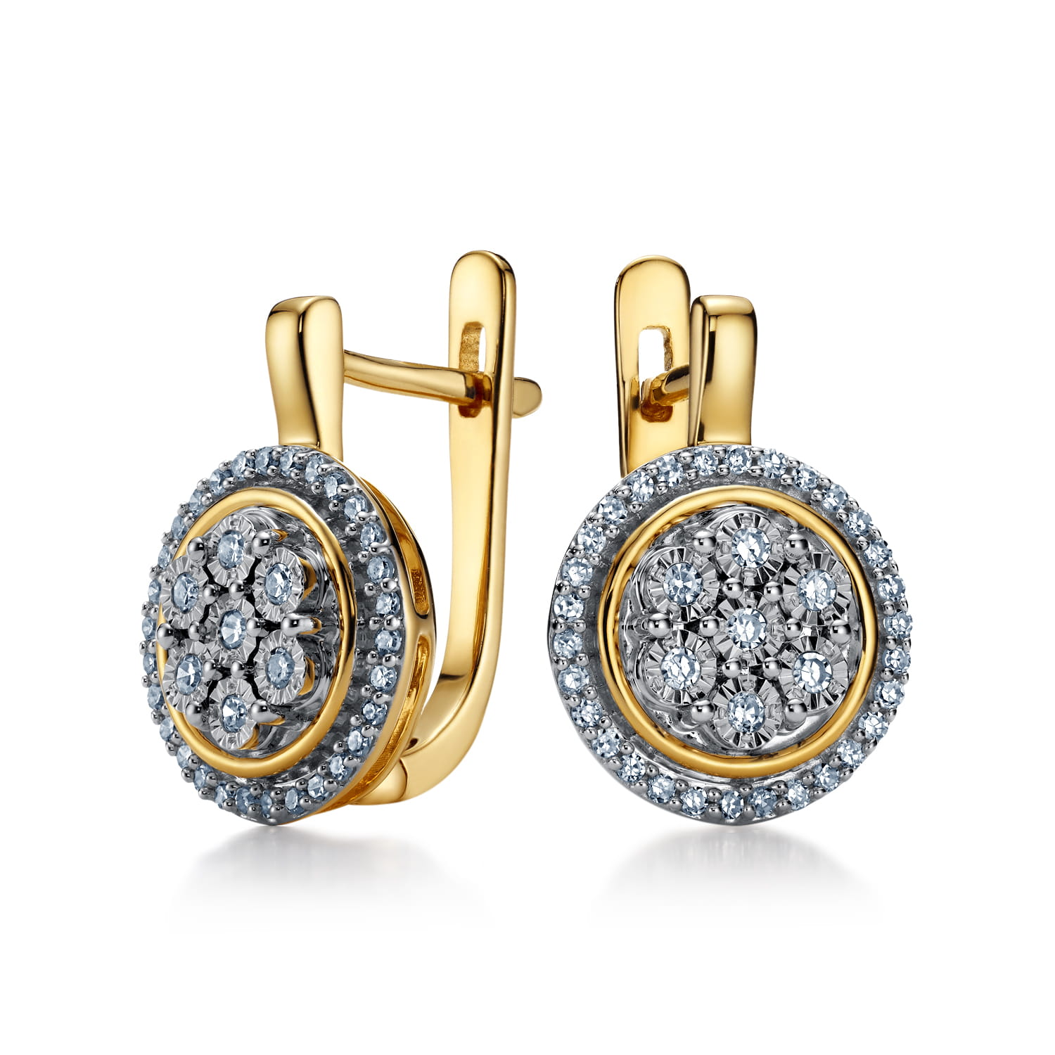Ekskluzywne kolczyki z angielskim zapięciem zatrzaskowym, wykonane z żółtego złota próby 585, ozdobione 74 naturalnymi diamentami o łącznej masie 0,22 ct. Precyzyjnie oszlifowane w szlifie single cut, kamienie pięknie odbijają światło, tworząc elegancki, ale nienachalny połysk.